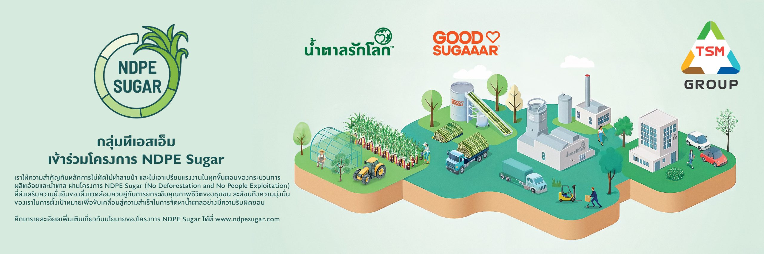 ศึกษารายละเอียดเพิ่มเติมเกี่ยวกับนโยบายของโครงการ NDPE Sugar ได้ที่ www.ndpesugar.com